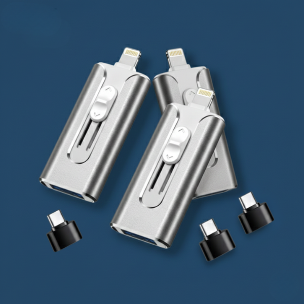 Omni bietet dir drei Anschlussmöglichkeiten: Lightning für iPhone, USB-C für Samsung und USB-A für klassische Geräte.